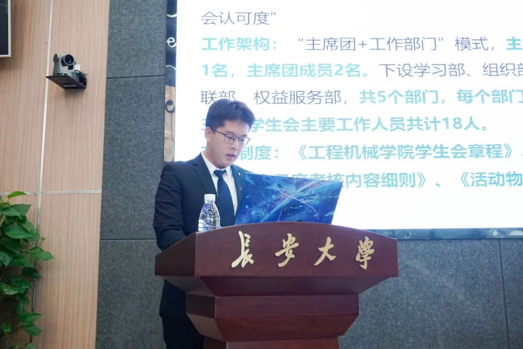 ▲ 学生会主席王皓璘做学生会工作报告