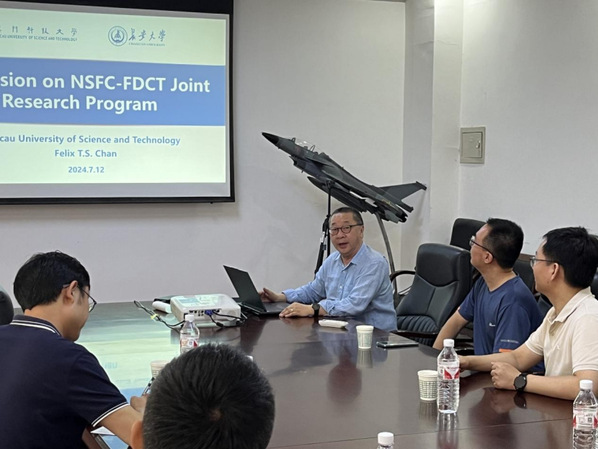 接着,Felix T.S. Chan教授介绍了NSFC-FDCT联合基金项目情况,双方围绕申报指南、申报日期、相关注意事项等进行了深入的研讨交流,初步达成了联合申报意向,充分发挥澳门科技大学商学院在决策科学和信息科学方面的优势以及91视频 在智能制造领域的优势,为下一步双方开辟新的研究方向打下基础。