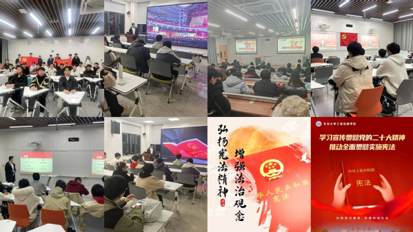 党建引领方面,学院党委高度重视宪法宣传教育工作,各学生党支部通过组织专题学习会、研讨会等形式,深入学习党关于全面依法治国的重要论述,将宪法教育融入党员日常教育管理,推动宪法精神在党员队伍中落地生根;班团建设方面,各班级、团支部积极响应学院号召,开展“学宪法 讲宪法”主题班会、“弘扬宪法精神 维护宪法权威”绘画接力等活动,通过主题班会、团日活动、知识竞答等形式,广泛宣传宪法知识,引导同学树立法治意识;法治实践方面,学院积极组织学生参与“宪法卫士”活动,网络学习率达100%,同时通过案例学习、海报制作等系列活动,增强学生法治观念和实践能力,推进宪法教育“入脑入心”。