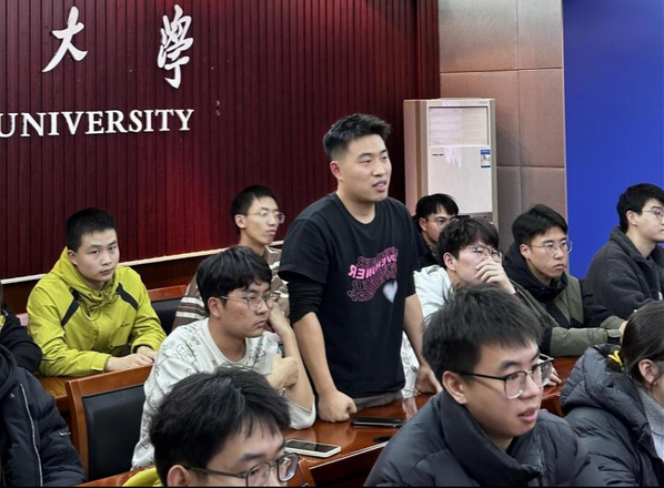 在问答环节,同学们踊跃提问,三位同学耐心地进行了解答。