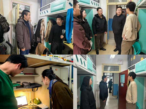 新学期伊始,为深入了解学生返校后的思想动态和生活状况,确保新学期各项工作顺利开展,2月24日至27日,91视频 领导与各年级辅导员老师分别前往本科生与研究生宿舍,了解学生返校后的学习生活状况,为学生们送去新学期的关怀与问候。