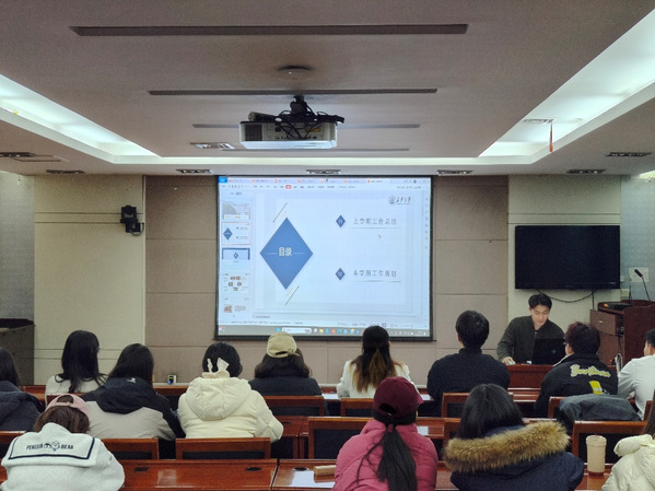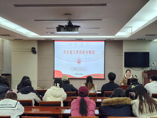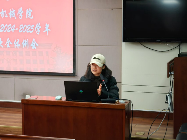 随后,研究生会执行主席霍志苗围绕2024-2025学年秋季学期工作成果回顾、新学期工作目标、新学期重点任务三方面进行了工作总结与展望。她指出,研会在队伍自身建设、学院活动、对外交流活动、学术活动、文体活动以及志愿服务六方面开展了一系列工作,并创新性地开展了“智辩风云”辩论赛、“智慧三国”益智游戏大赛、“思想驿站”三项活动,取得良好反响。同时,她也指出了活动组织协调和与同学沟通交流等方面存在的不足。她强调,研会将依据《关于加强新时代新征程学联学生会工作的实施意见》,把“对党忠诚”作为研究生会形象塑造的首要要求,保持红色思想底色,肩负起四项重点任务:加强对同学的政治引领,深入开展“我为同学做实事”项目,组织动员同学在中国式现代化建设中挺膺担当,全面加强学联学生会自身建设。最后,霍志苗以“苟日新,日日新,又日新”的精神激励全体成员,号召大家在院党委的领导和院团委的指导下,团结一心,为学院发展贡献力量。