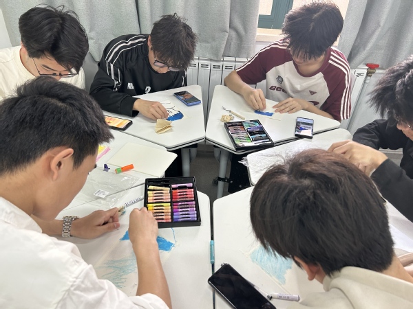 热身结束后,活动进入自由创作阶段。本次创作不设主题限制,为同学们提供了充分的创作空间。在温暖明亮的教室环境里,同学们拿起画笔,将心中的想法、丰富的情感以及对春光的感悟尽情倾注在画纸上。有的同学描绘出五彩斑斓的春日美景,展现出对大自然的热爱;有的则通过抽象的线条和色彩,展现内心复杂多变的情绪。在绘画过程中,同学们专注而投入。不少同学表示,平时难以用言语表述的情感,在绘画时自然而然地流露出来,每一笔都是对自我的一次探索与发现。
