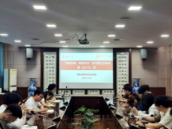 第58期读书分享活动由贾昕宇和周志垚佳分享《习近平关于加强党的作风建设论述摘编》。首先,贾昕宇分享了第二章《作风问题本质上是党性问题》,他表示,作风问题不仅是政治要求,更是治学做人的根本准则,研究生党员在学术研究中必须坚守诚信底线,弘扬“板凳要坐十年冷”的治学精神。面对科研中的各种诱惑和浮躁风气,要以“火眼金睛”的辨别力和“铁纪”般的自律意识,坚决抵制学术不端行为。随后,周志垚佳分享了第三章《作风问题核心是党同人民群众的关系问题》,他表示,作为研究生不应将学术研究束之高阁,要时刻牢记科研的最终目的是服务人民,要将个人理想融入到为人民群众谋福祉之中,应主动走出校园,通过社会实践、志愿服务了解人民群众的切实需要,将理论知识与实践相结合,最终实现把论文写在祖国大地上。
