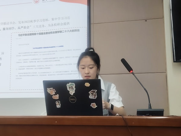 办公室工作人员廉佳琪带领全体成员深入学习了习近平致全国青联十四届全委会和全国学联二十八大的贺信以及团十九大报告等内容。她号召大家坚定政治方向、勇担时代使命,将个人理想融入民族复兴伟业。在大会精神落实过程中,她强调要立足学科特色与同学需求,持续深化“‘匠’职引航,‘械’梦启程”就业创业赋能项目,通过“职航导师团”“机械讲坛”“企业参访”等活动破解求职难题;同步开展学业帮扶、文体赛事及权益服务,构建“提案直通车”闭环机制,切实做到“小事不出校、服务不断线”。此外,研会2025年秋季任务清单中,涵盖“我为同学做实事”、职业规划大赛、多项体育赛事及志愿活动等,她广泛动员同学们积极参与,将大会精神切实转化为服务同学成长、促进组织发展的生动实践。