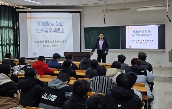2026年1月16日下午,机械设计与制造系在渭水校区WM3103教室召开2023级机械设计制造及其自动化专业生产实习动员会,旨在明确实习要求、强化安全纪律意识,保障实习工作顺利推进。系主任刘清涛、带队老师万一品及该专业全体同学参会。